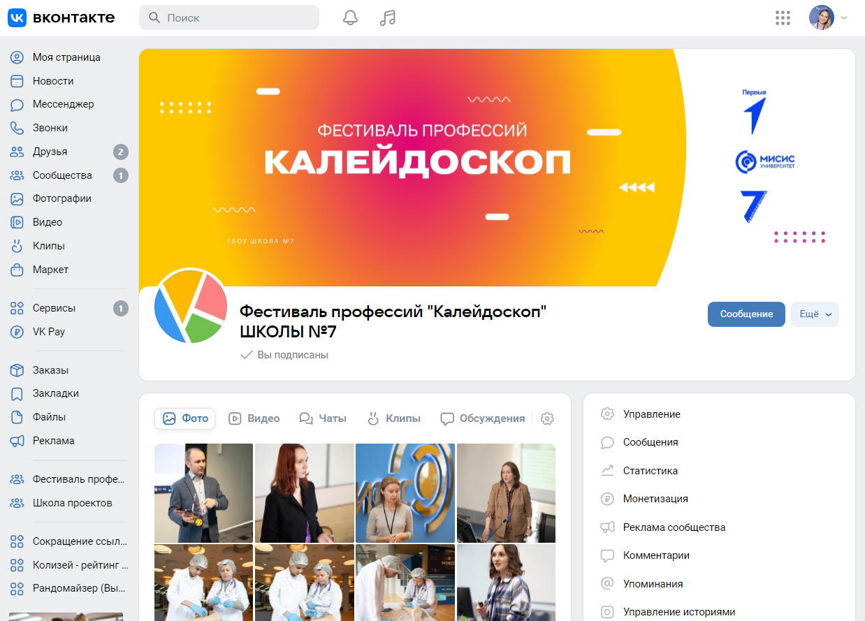 Фестиваль профессий "Калейдоскоп" организован для помощи школьникам в определении с выбором будущей профессии и развития навыков разработки собственных проектов. Для школьников проведено 6 обучающих онлайн встреч по разработке собственных проектов. На итоговом очном мероприятии фестиваля профессий «Калейдоскоп» в Университете науки и технологий МИСИС, школьники 8-11 классов ГБОУ Школа № 7 (1000 человек) посетили 30 мастер-классов и познакомились с различными профессиями. Мастер-классы провели приглашенные эксперты из различных профессиональных сфер – учителя школы, преподаватели университета, родители школьников и другие приглашенные специалисты